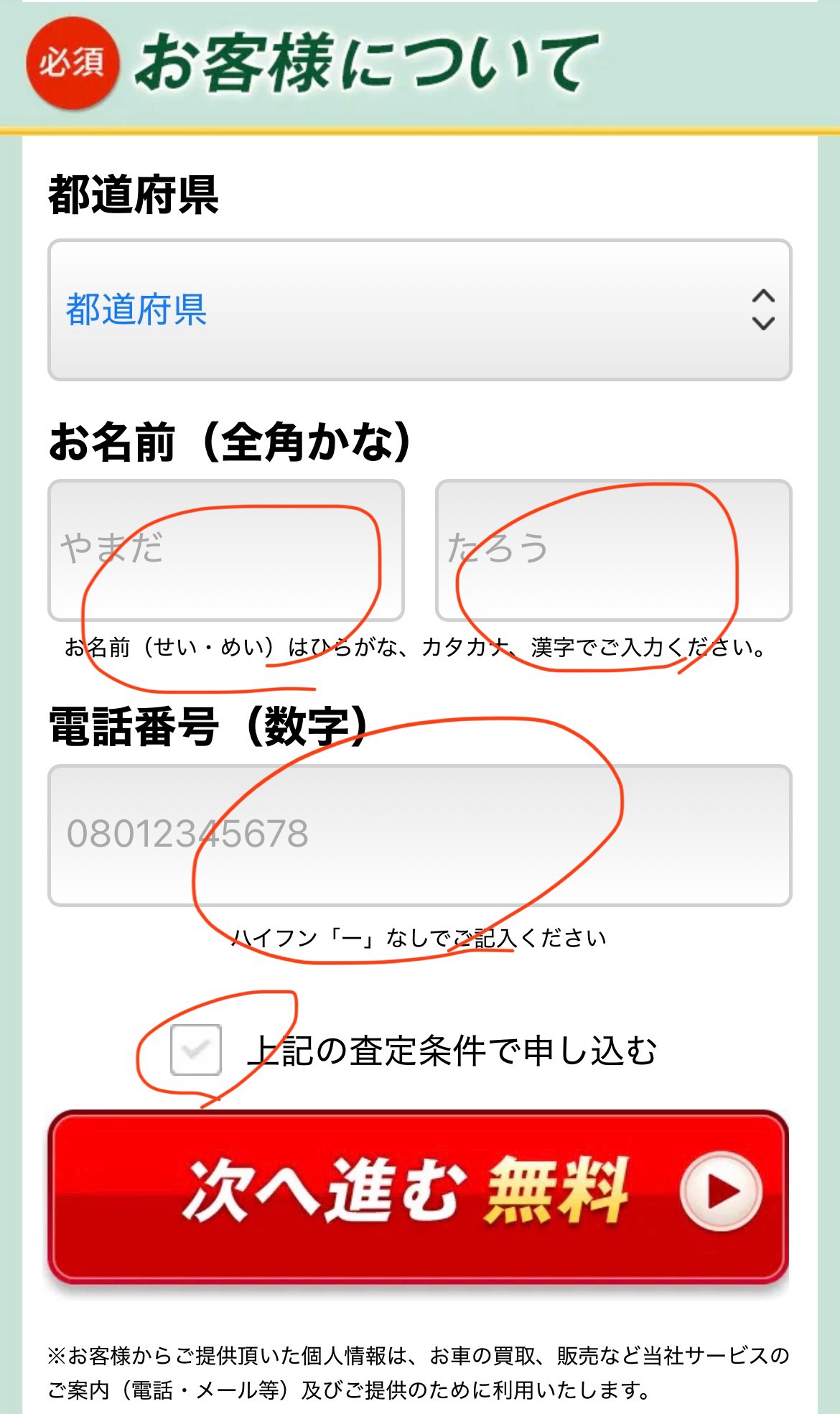 必要事項を入力するとガリバー専属オペレーターが電話をくれます。一番近いガリバーに来店予約をしてくれるので便利ですよ!